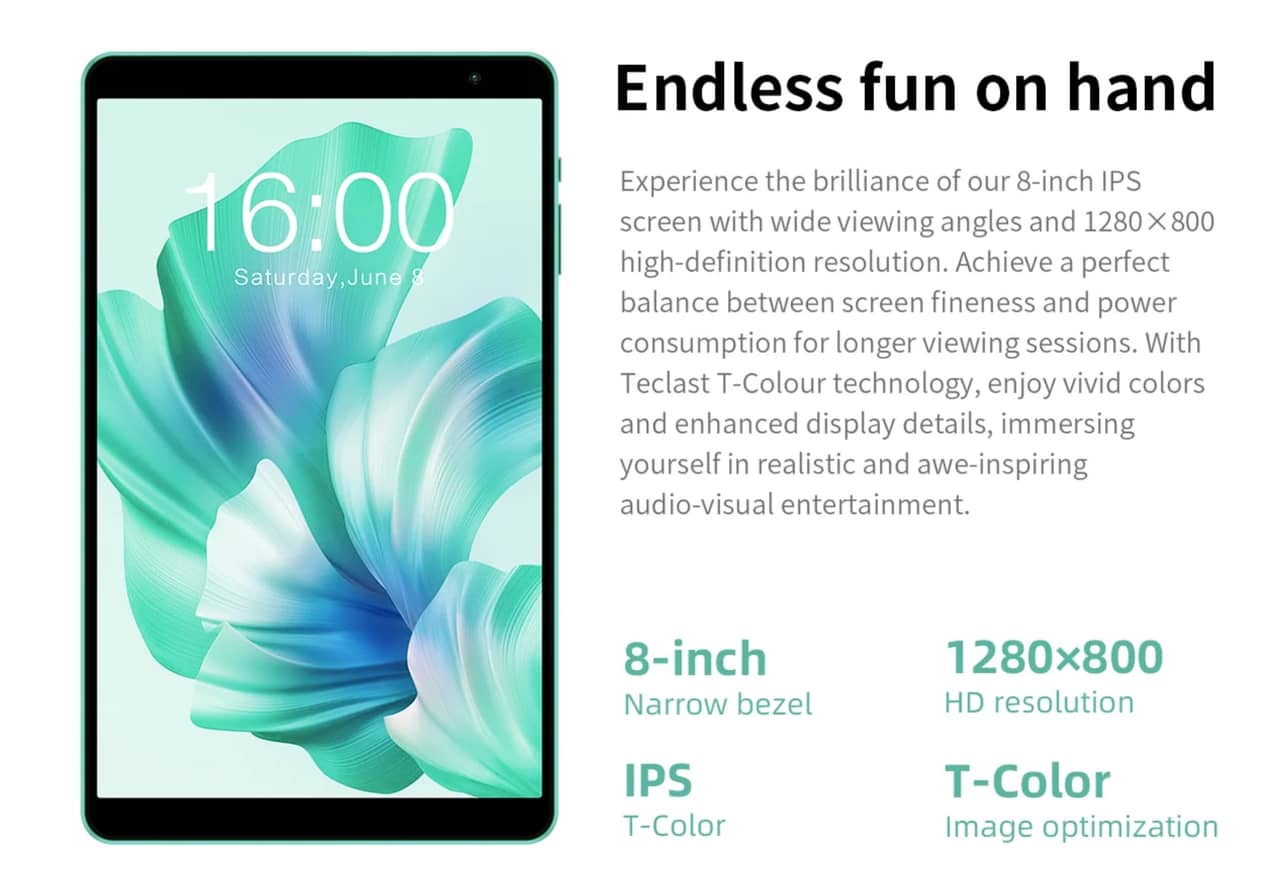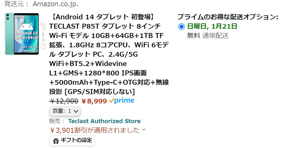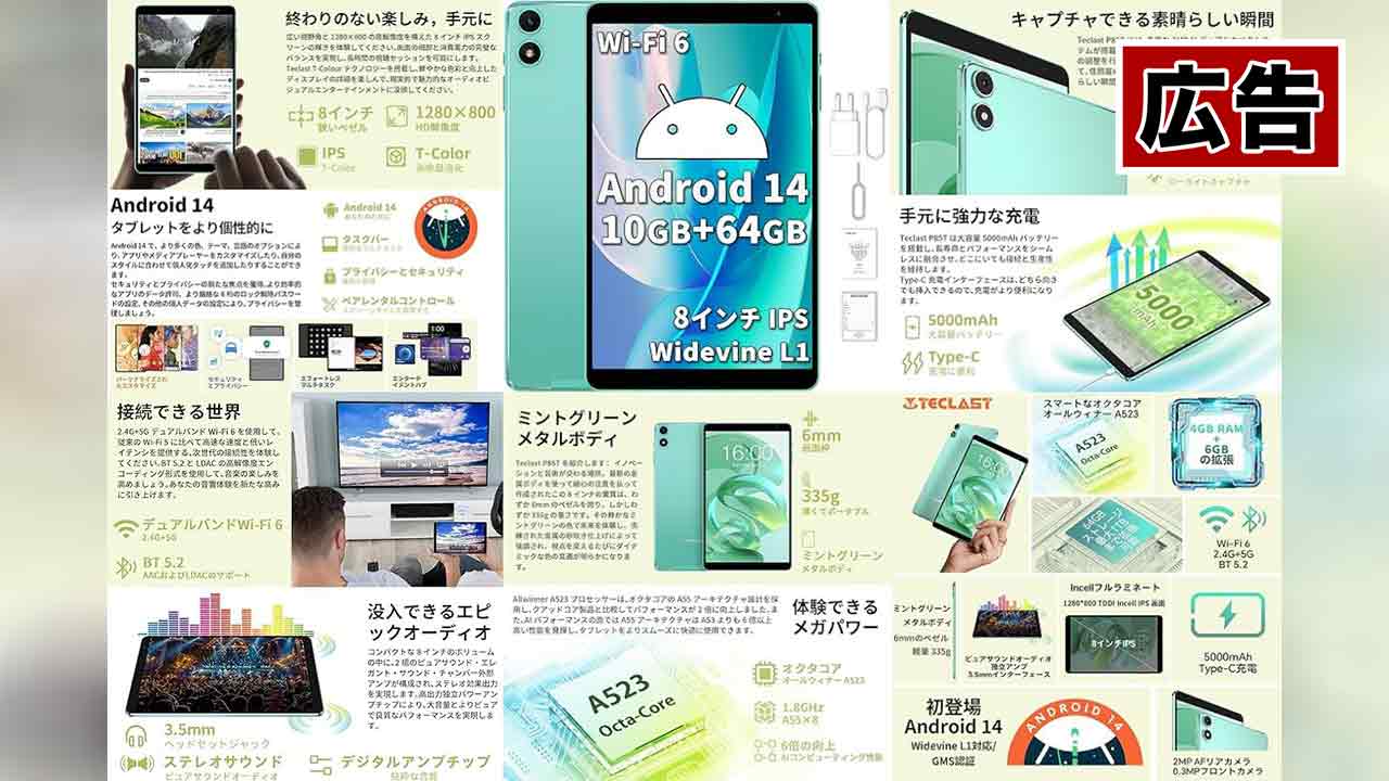 AmazonにてTeclast P85Tが1万円切りのセール中!8インチの小ぶりなディスプレイ、Allwinner A523搭載、Widevine L1対応で8,999円とかなり安くなっています。