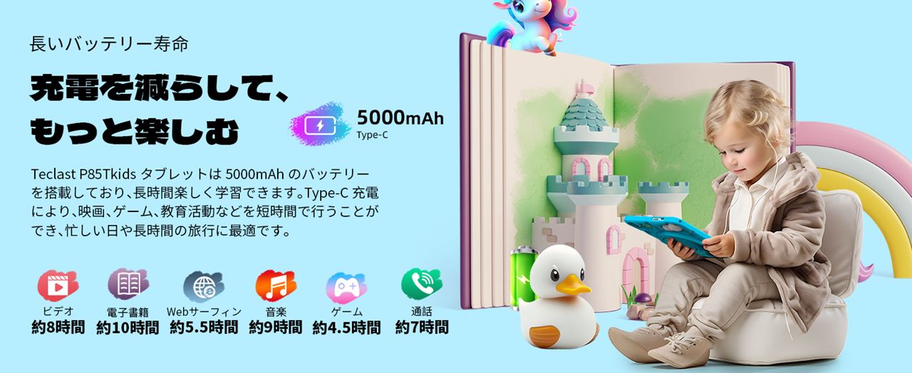 Teclast P85Tkidsの特徴やスペックをまとめたのでチェックしてみて下さい。8インチサイズの子供向けタブレットとなっています。