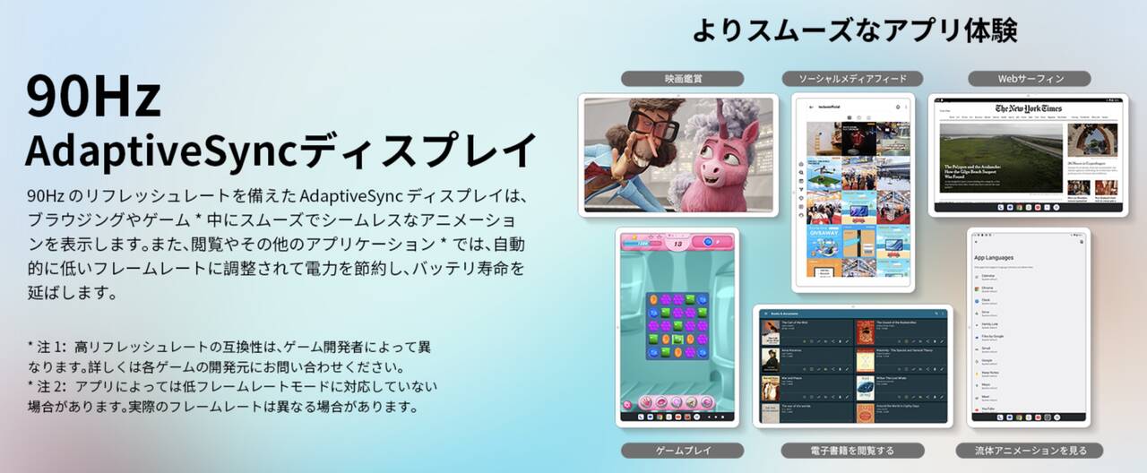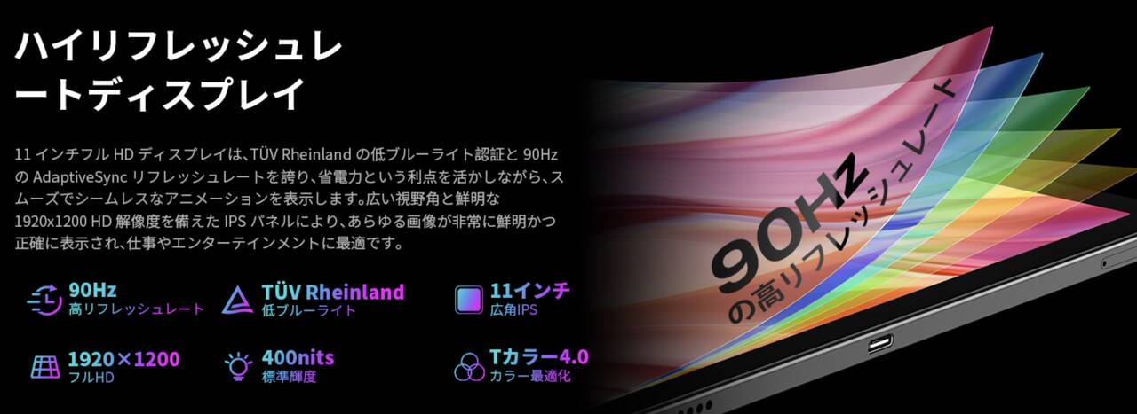 ▼ディスプレイは11型のHDパネルを採用。高リフレッシュレートは変わらず90Hzに対応しているのがGood。↓
