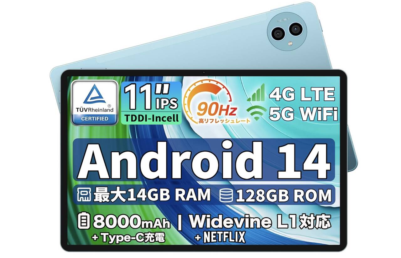 その他、バッテリー容量は8,000mAh、SIMカード&GPS対応、Android 14を搭載。