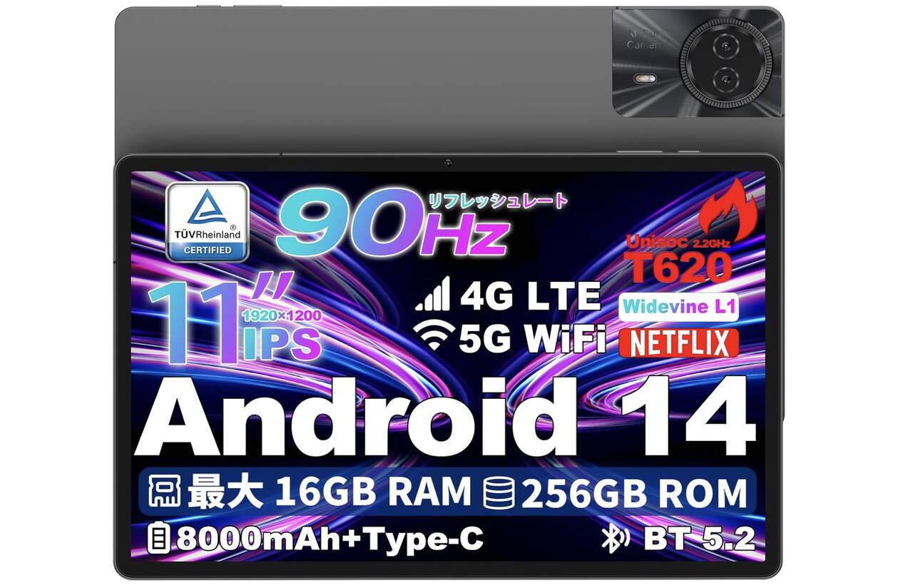 その他、バッテリー容量は6,000mAhでAndroid 14を搭載。本機はWiFi専用機でSIMカードには対応して無いのでご注意を!