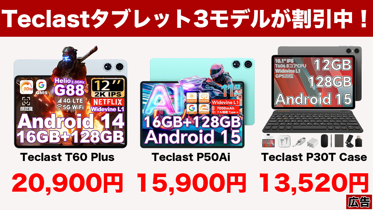 3/4まで!Teclastタブレット3種のセールがアツい!最安は1.3万円でキーマウ付き!