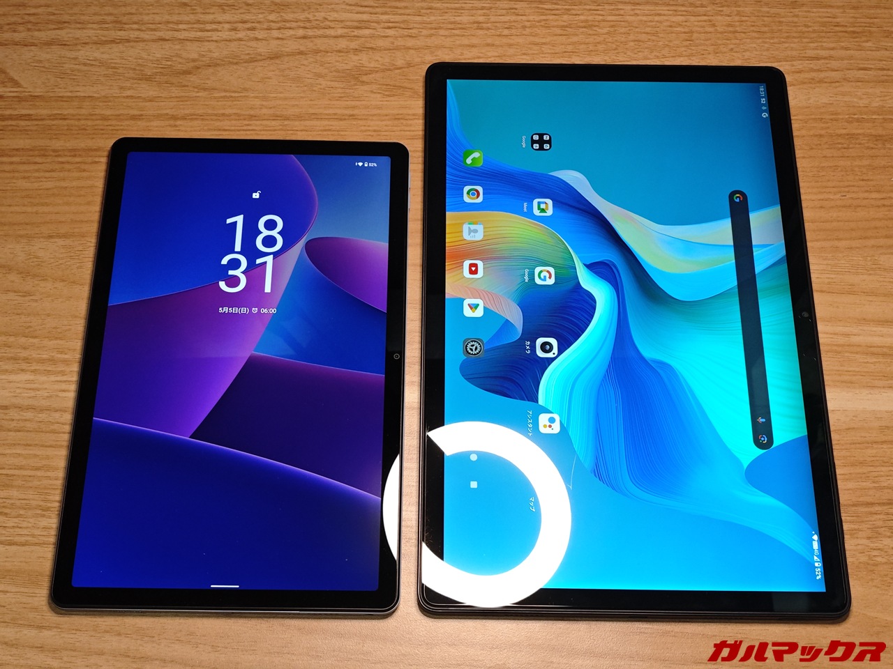 ▼ディスプレイは超巨大。10インチクラスと並べてもこんなに大画面!WidevineもL1なのでNetflixやAmazonプライム・ビデオもこの大画面で高画質に視聴できちゃいます。↓