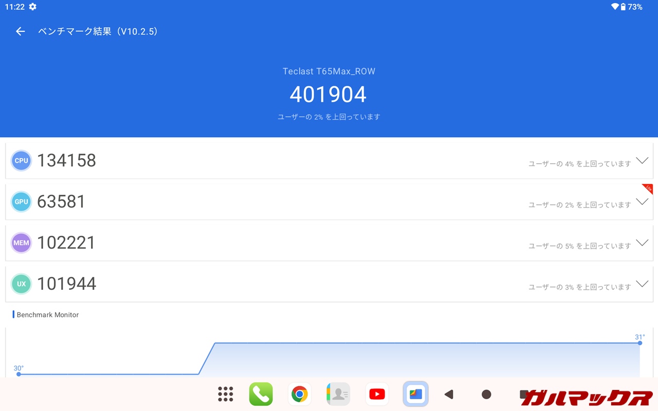 ▼搭載するSoCは先程紹介したTeclast T65 Maxと同じくHelio G99を搭載。ゲーム以外の使い方に向いた性能ですね。↓