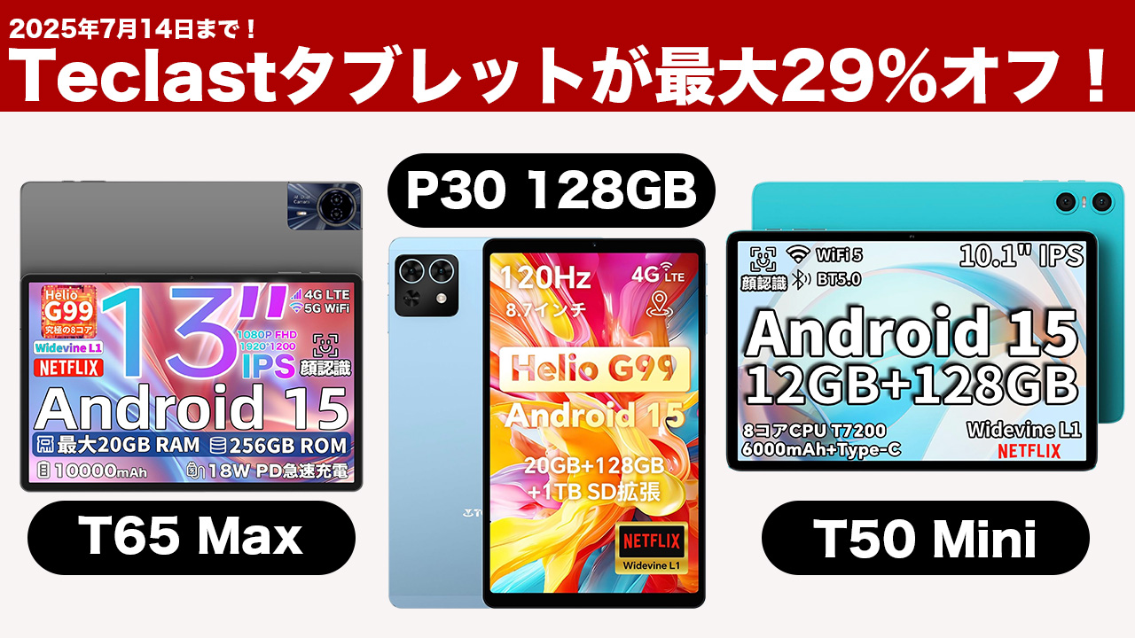 Teclastのタブレット「T65 Max」「T50 Mini」「P30 128GB」がAmazonプライムデーで割引!