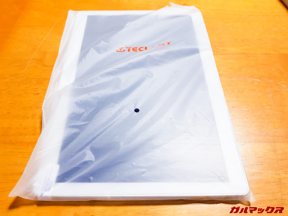 ▼箱を開けると本体がお出迎え。本体を保護するビニールにもTeclastのロゴがあります。↓