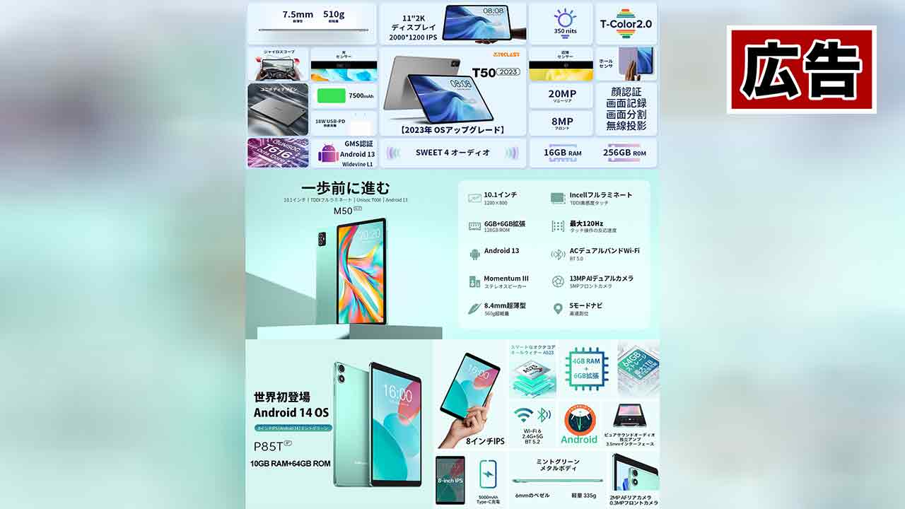 AmazonでTeclastがタブレットのセール中!セール対象はT50、M50、P85Tの3種がラインナップされています。P85Tは9,499円と激安価格。