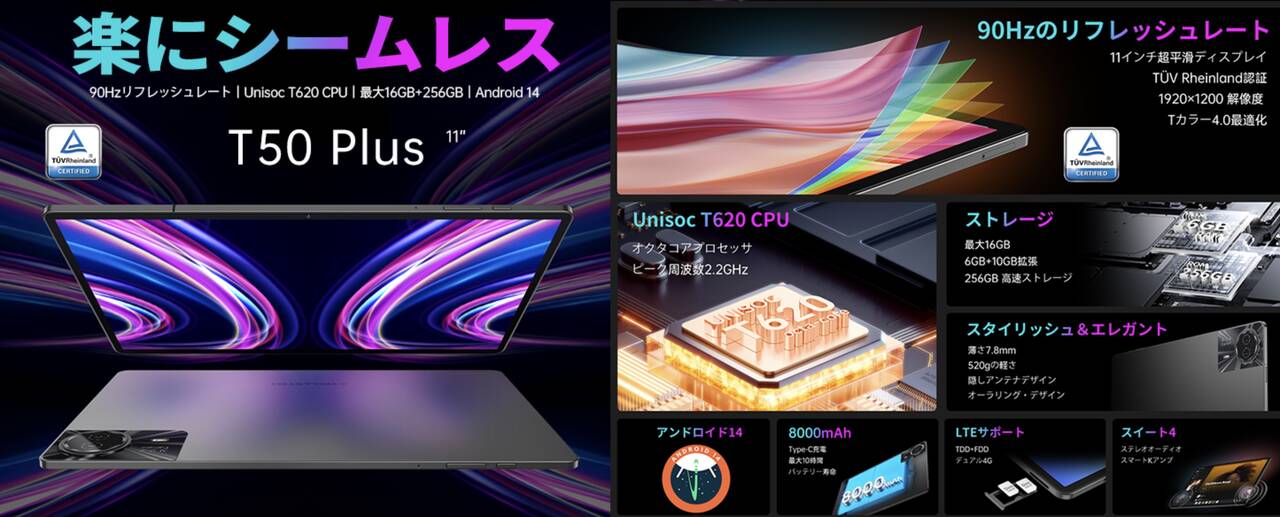 Teclastが新型タブレット「Teclast T50 Plus」の販売を日本で開始!SoCはUnisoc T620が搭載されてますな。もしかしたらこれから格安タブはこの石が主流になるかも?それではスペックや特徴をチェックしてみましょう。