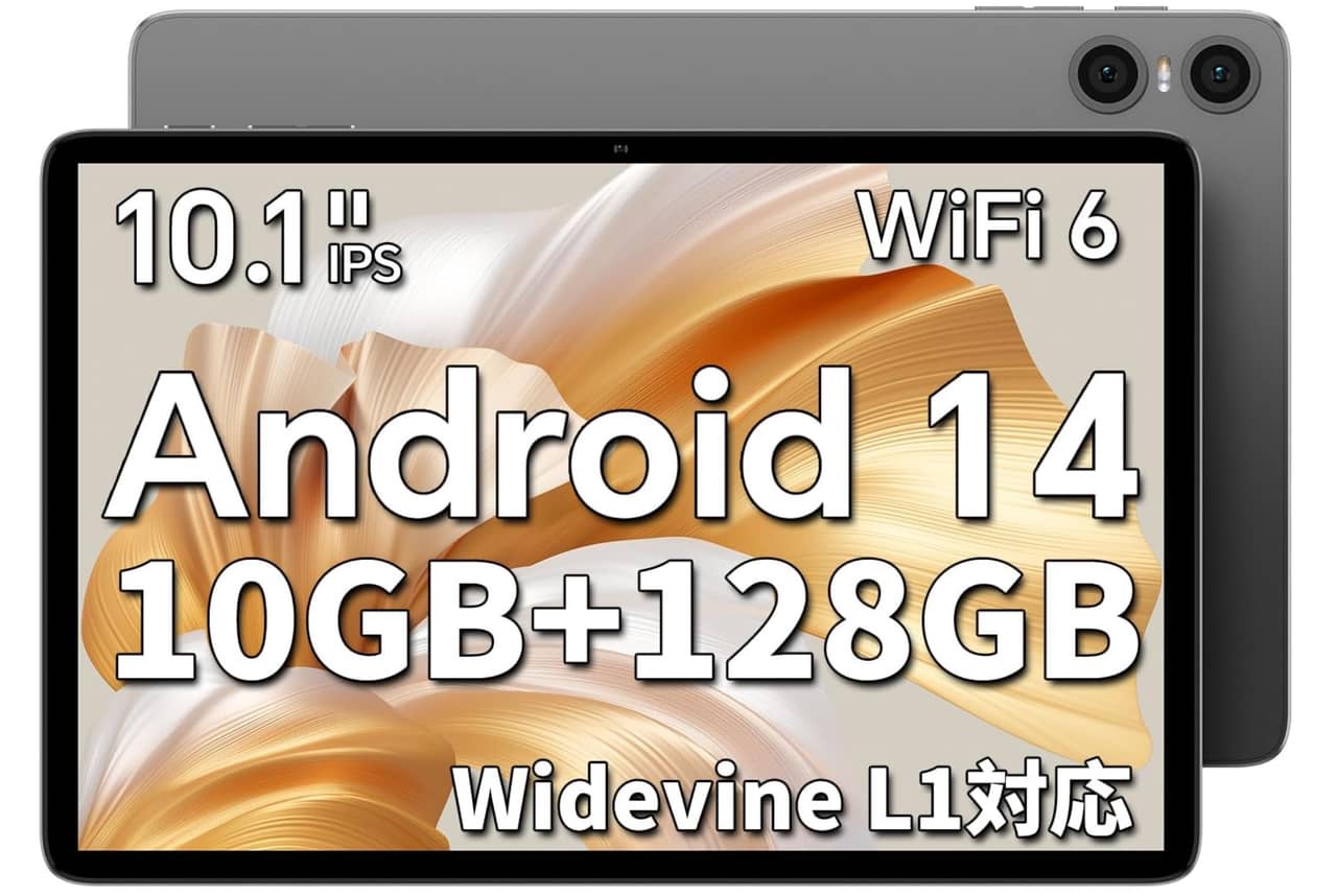 ディスプレイサイズは10.1インチサイズで1,280×800解像度。ドットの粗さは感じそうです。ただしWidevine L1対応なのでHD再生が可能です。