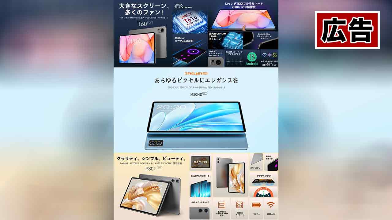 Teclastのタブレットがセール中!当記事ではT60とM50HDとP30Tをご紹介しています。セール期間は2月4日までなのでお早めに!