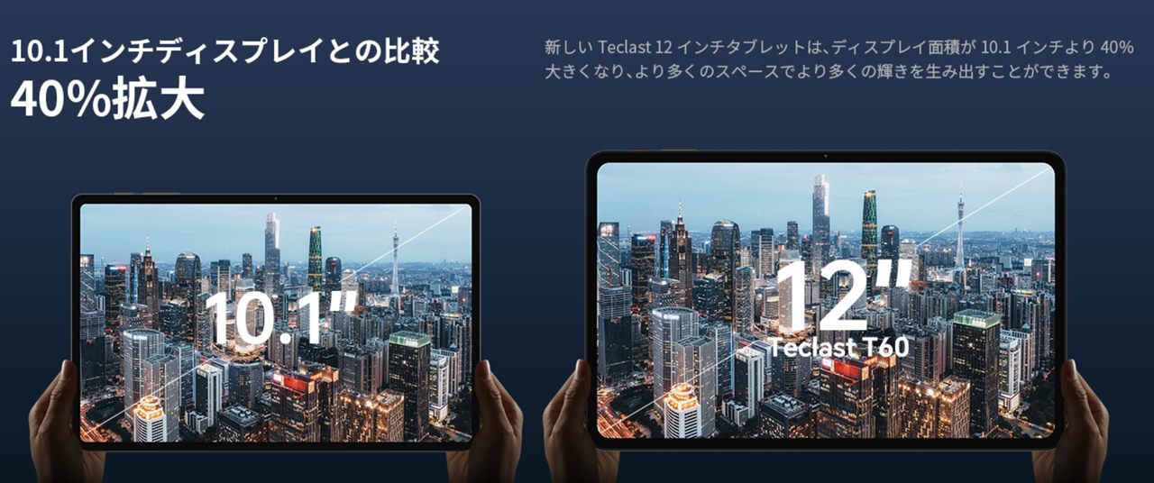 T60は当記事最大モデル、12インチというタブレットとしてはかなりの大型サイズというのが特徴ですよ!