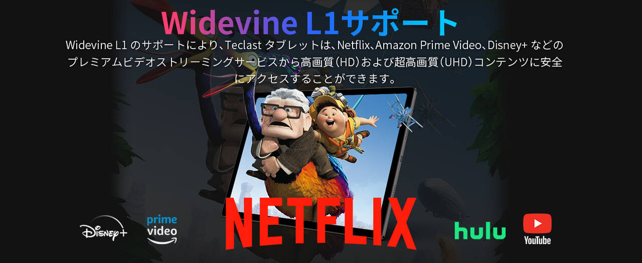 ▼Widevine L1もバッチリ対応!プライムビデオ、HuluからNetFlixまでHD再生を可能とするのも魅力です。アニメから映画まで没入感マックスで楽しめそう!↓
