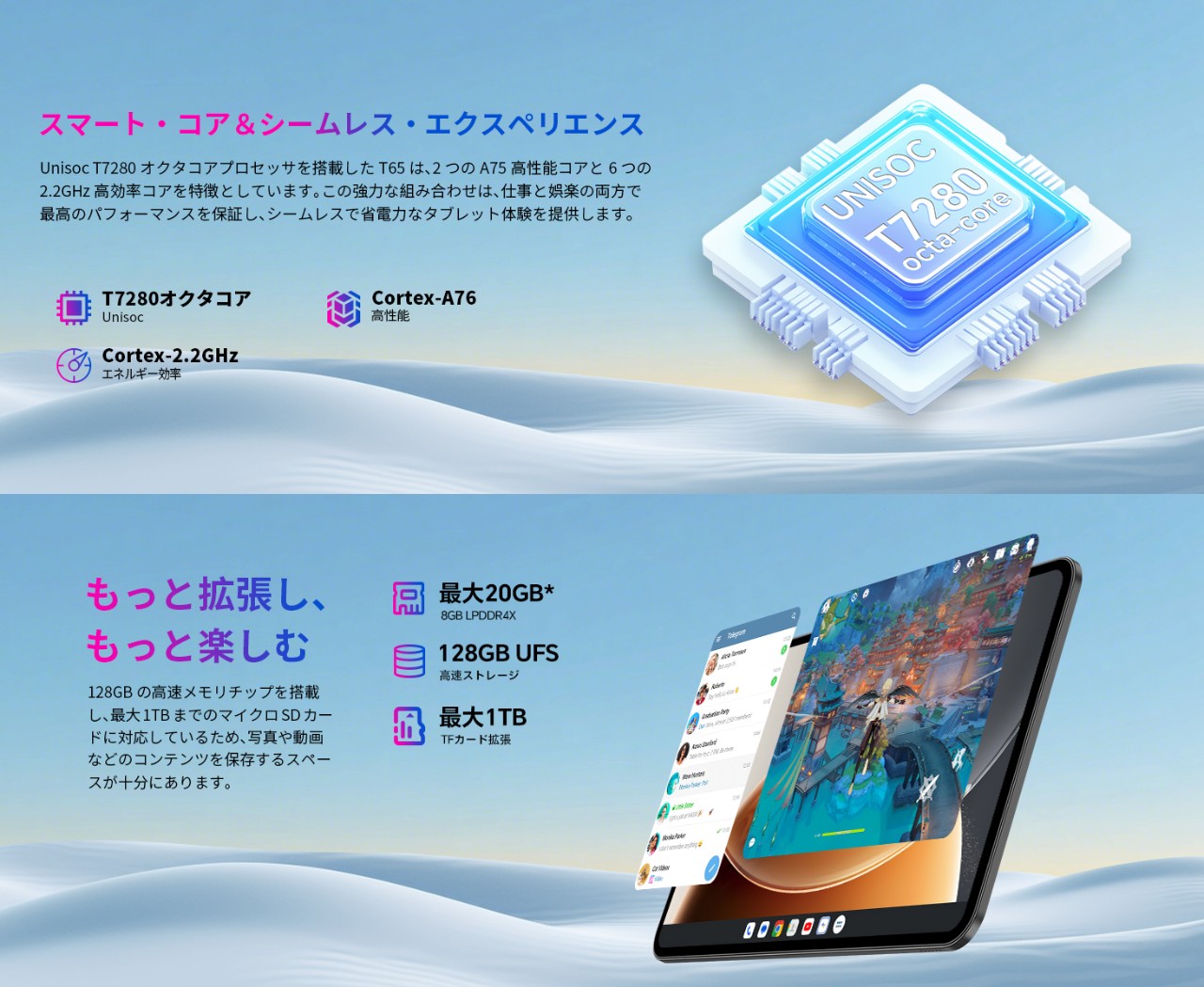 Teclastの大型セルラータブレットTECLAST T65が登場!価格は2.8万円ほどながら大画面かつ120Hz対応でSIMも使えるミドルレンジ性能の万能な1台です。