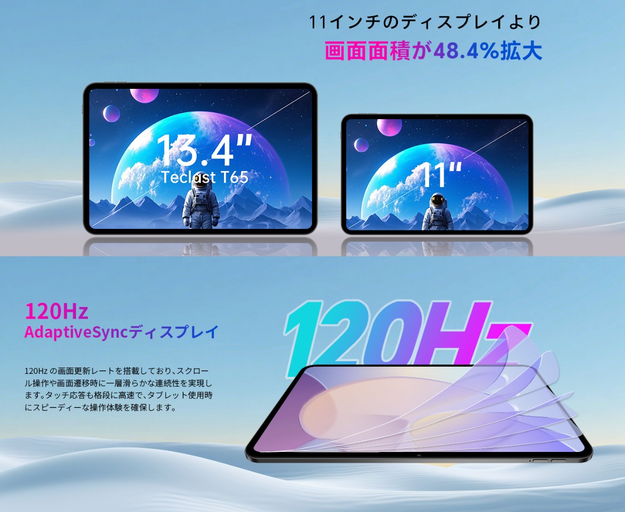 13.4インチの大画面が特色、120Hzも対応!
