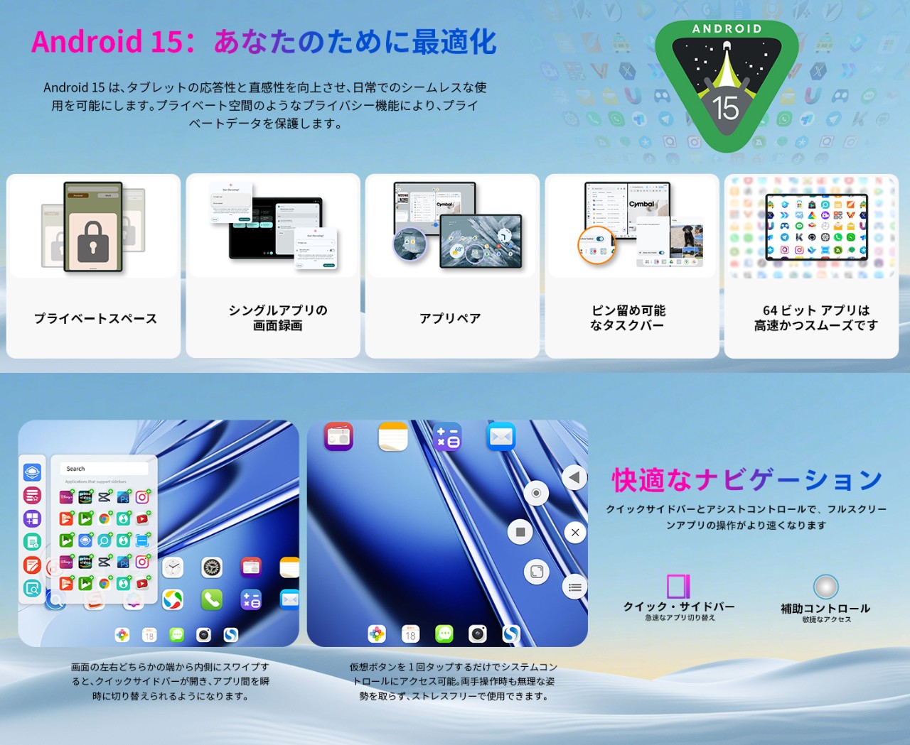 最新バージョンのAndroid 15内蔵、SIMも使える