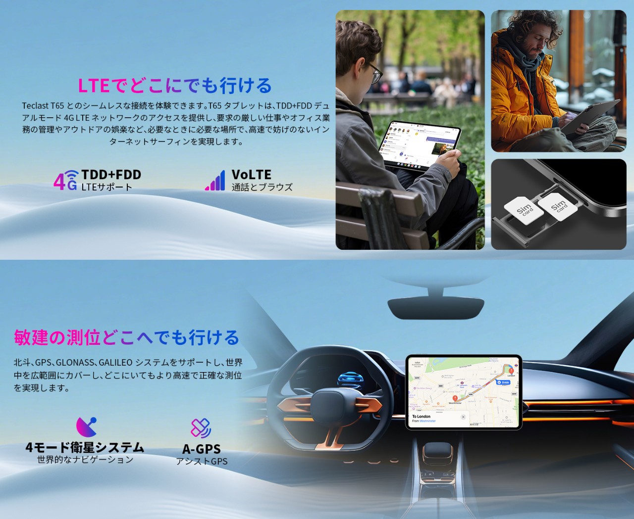 ▼このモデルはSIMも内蔵しており、対応バンドに合致するものを差し込めば出先でのデータ通信が可能なのもミソ。GPSも内蔵しているのでカーナビ用途にも使っていけます。めっちゃデカいから取り回しは難しそうだけど。↓