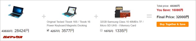 ▼Teclast Tbook 16 PowerはGEARBESTさんで購入可能です。執筆時点だと48086円がキーボードセットで32,000円。GEARBESTを利用したことの無い方は「GEARBESTの使い方」もチェックをどうぞ!(キーボードセットで購入する場合は、少しスクロールするとキーボードをセット出来る項目が有るのでチェックをいれてカートに入れて下さいね!)↓
