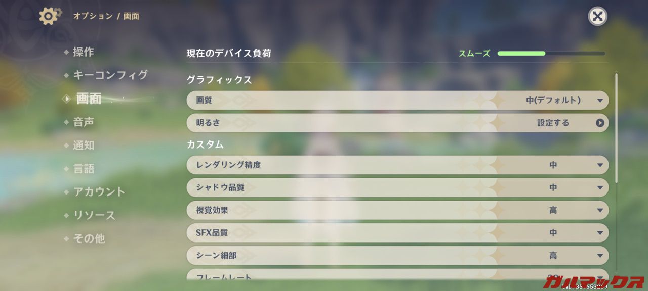 ▼グラフィックのデフォルト設定は「中」となっていました。↓