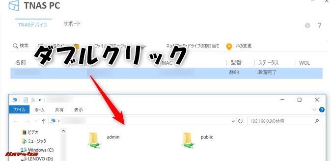 ▼という訳で、デスクトップクライアントを起動してIPアドレスが書いている部分をダブルタップしてみたところローカルアクセス出来るフォルダが表示されました。↓