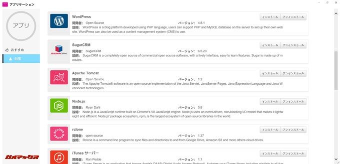 個人的に馴染みがあるのはガルマックスのブログシステムに利用しているWordPressくらいですが、様々なアプリを放り込んでファイルサーバー以外にも活用出来ます。