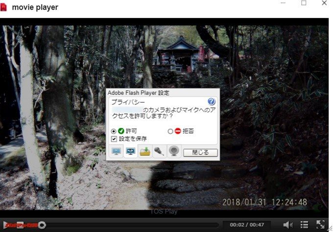 TOS上で動画ファイルを再生する時はフラッシュプレイヤーのプライバシー項目をオンにしたら再生出来た