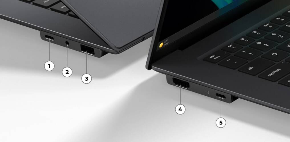 ▼ThinkPad X9 15 Gen 1にはType-C端子が2つ、USB-A端子が1つ、HDMIが1つ、オーディオ端子が1つ。↓