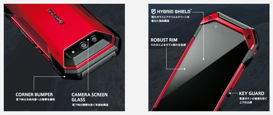 ▼TORQUE 5G KYG01は水濡れでも衝撃に対しても耐性を持っておりとっても頑丈!普段使いで画面にヒビを入れたり壊したりする心配がなく、アウトドアシーンでもピッタリな耐久性が魅力です。↓