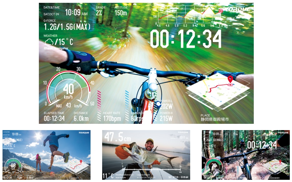 ▼そして面白いのが、時間、標高にジャイロ、マップ、魚の大きさに速度計と、様々なHUDを表示した撮影ができるという点!まるでゲームのような面白さで実にワクワクさせられますね!釣った魚の大きさも測れる機能も搭載されています。↓