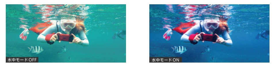 ▼本体の高い耐久性をイカし、水中で直接撮影することもできるんです!流石タフネスモデル。また水中でも色合いが変わらないように、色彩を自動調整するという機能も対応しているんです。↓