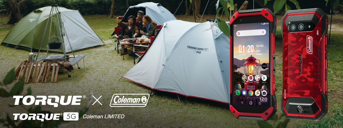 ▼また老舗のアウトドアブランド「Coleman(コールマン)」とコラボした限定モデルも登場!カラーは迷彩柄のレッドとなり、よりアウトドア志向のデザインになっておりカッコいい!また、見た目だけでなく壁紙とアプリも限定版のものが収録されています。↓