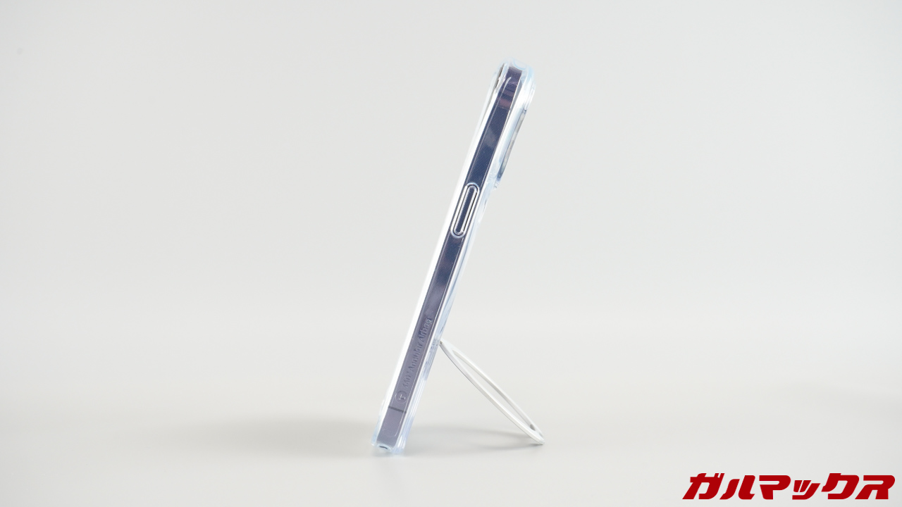 持った感じは普通のクリアケース入ってるiPhoneって感じ。ケースの厚みも純正ケースとそんなに変わりません。