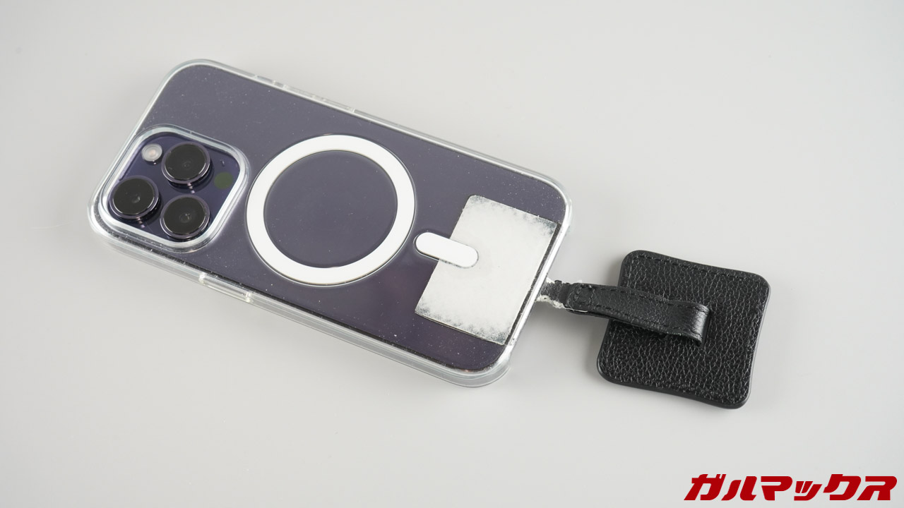 ▼ってことで、MagSafeと落下防止アイテムのどちらも使いたい僕は純正のMagSafe対応ケース+小指に引っ掛ける落下防止アイテムを取り付けて使ってました。↓