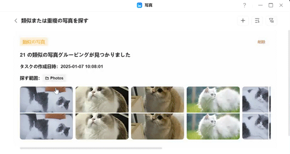 ▼また類似・重複した写真などを見つけてスピーディーに整理できるようサポートしてくれる機能も搭載してます。↓