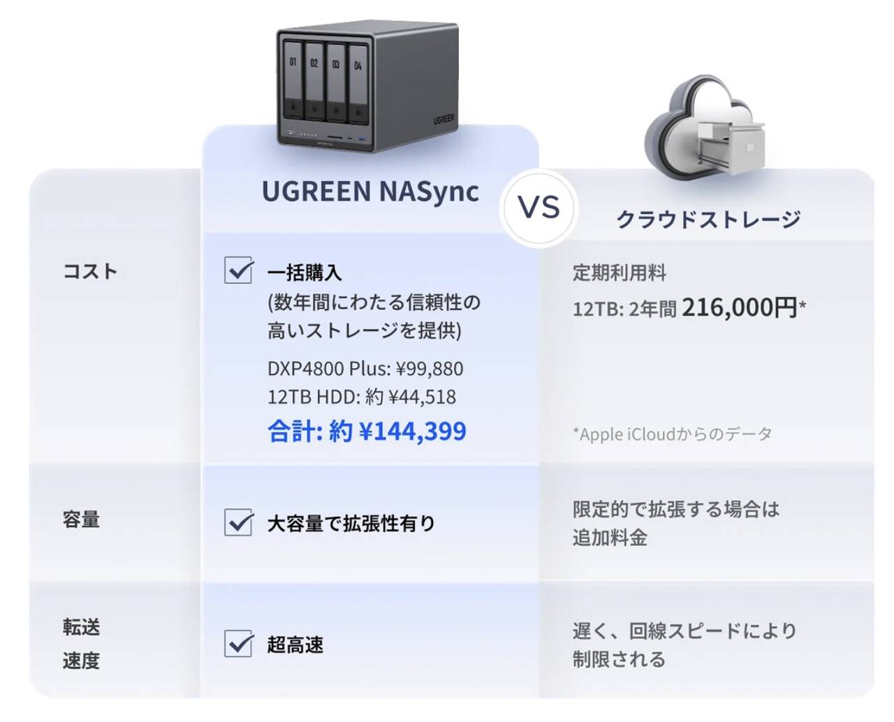 ▼これはUGREEN NASync DXPシリーズとクラウドストレージサービスのコストイメージ↓