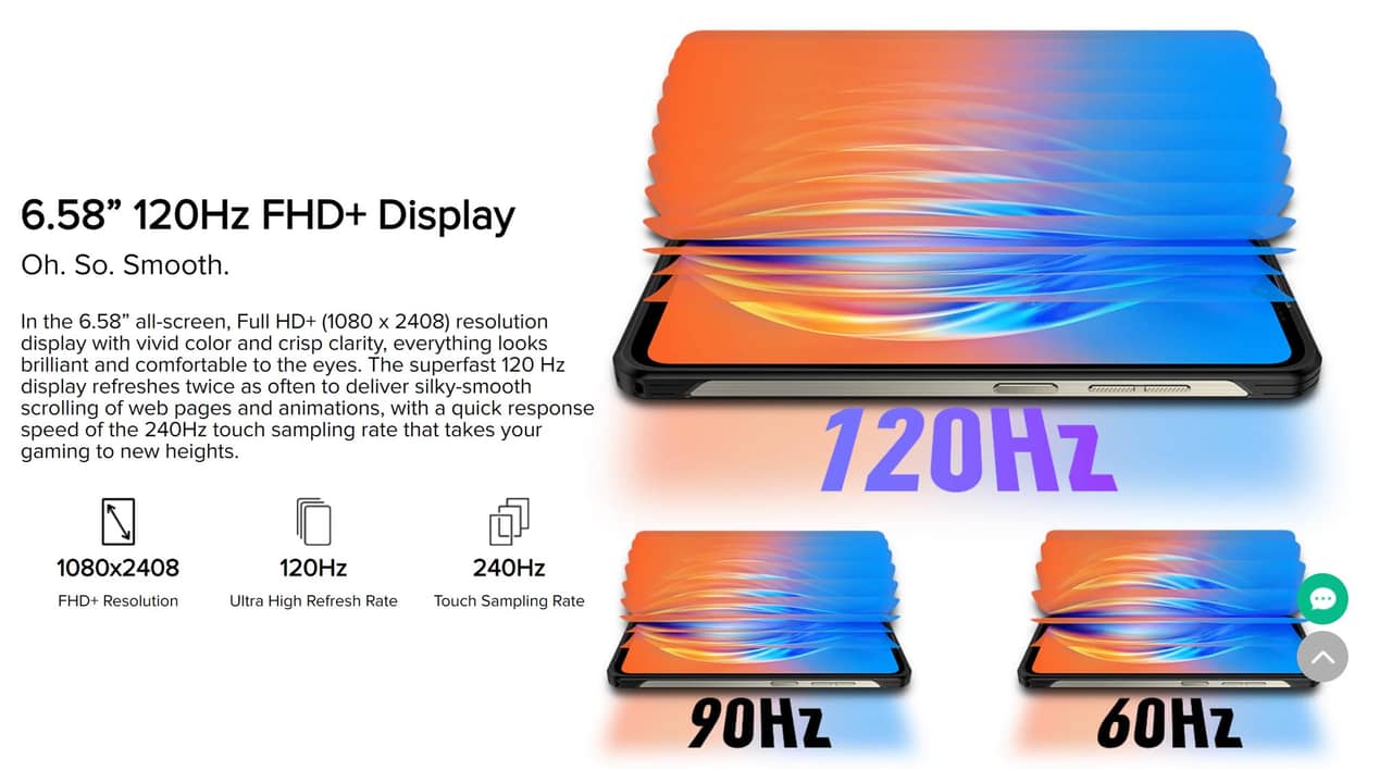 ▼ディスプレイは6.58インチと大きく、解像度はFHD+クラスで高精細、さらに最大120Hzの高リフレッシュレートも対応とタフネススマホながらかなりリッチなスペックになっております!↓