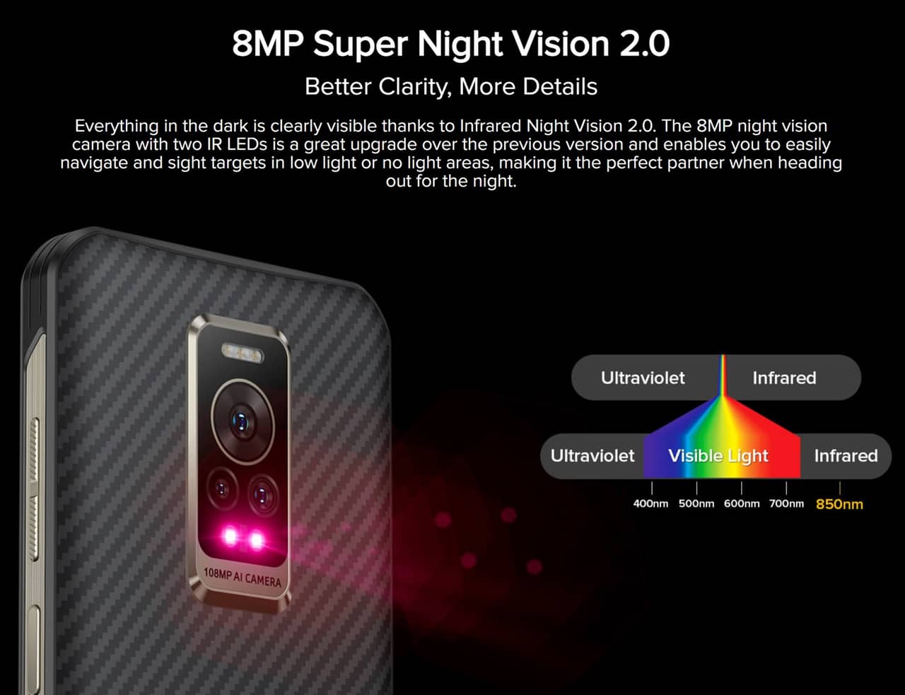 ▼800万画素のナイトビジョンカメラも搭載しており、赤外線を使うことで完全な暗闇でも撮影できるのも特色です!↓