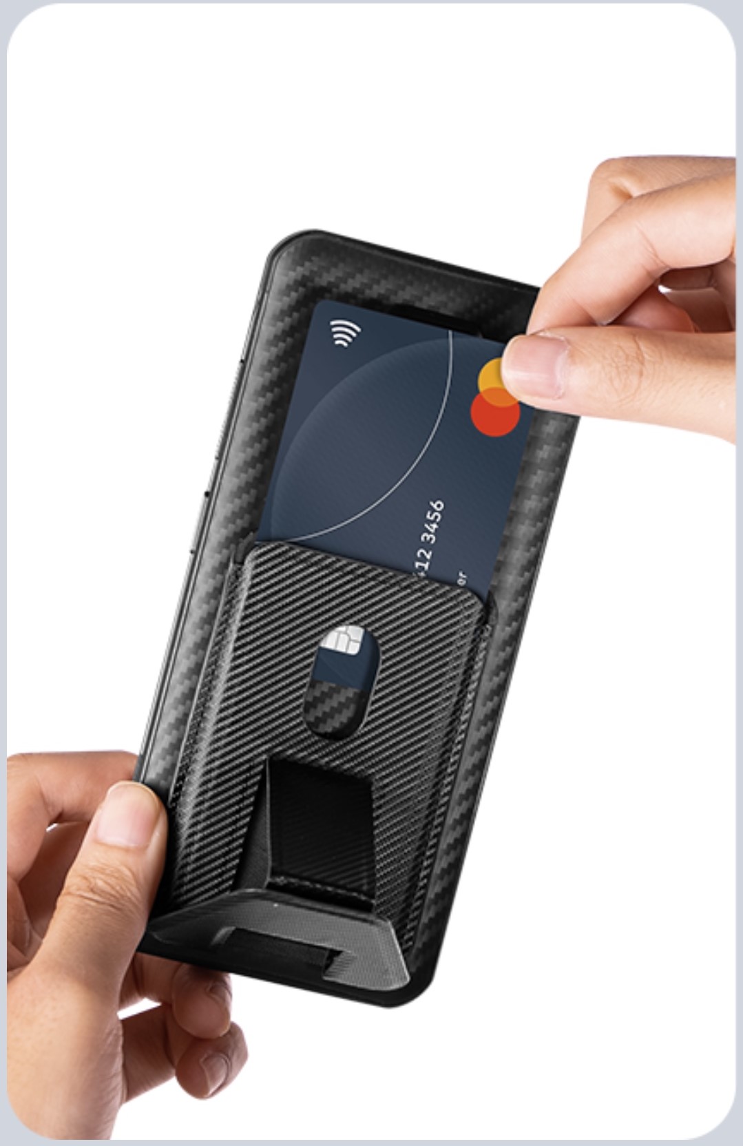 - 背面に磁気リング搭載。カードウォレットスタンドも付属している