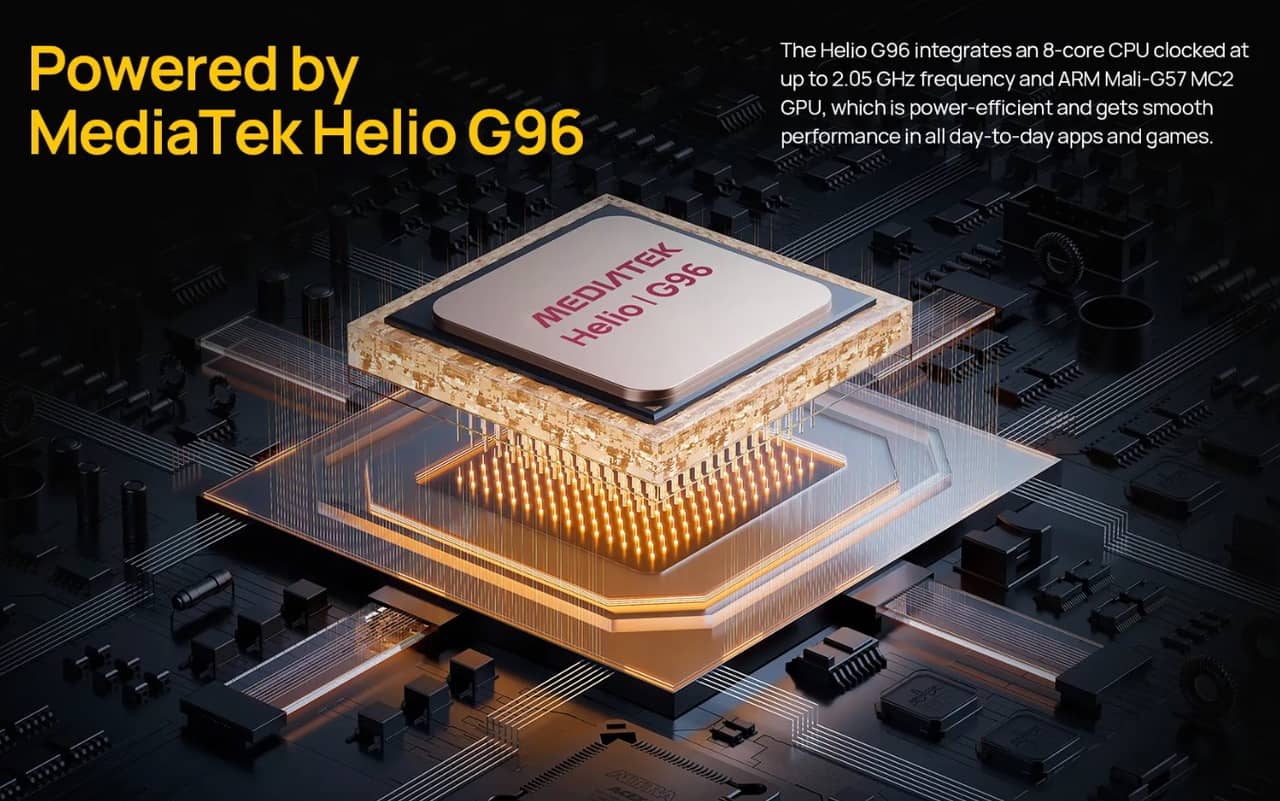 ▼SoCはMediaTek Helio G96!AnTuTu v9参考値は33~35万クラスで普段使いに申し分無いミドルレンジ帯の中間スペック。↓