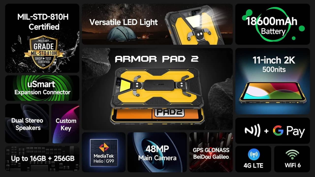 Ulefone Armor Pad 2のスペックまとめ!Helio G99、特大バッテリー、大型LEDライト搭載タフネスタブレット!