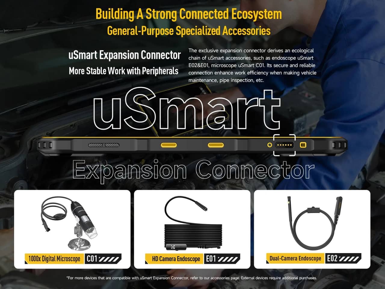 ▼あと独自機能もたっぷり詰まってます。まずuSmart端子が搭載されており、これは別売りで内視鏡とかマイクロスコープとかを繋いでUlefone Armor Pad 2で写し使うことが出いるっちゅう仕組み。↓