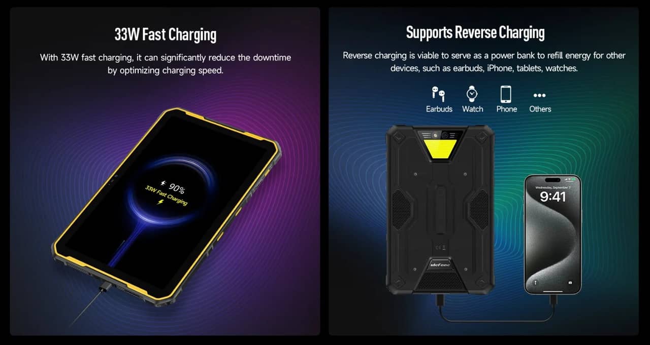 ▼急速充電も33Wと中々に高く、そして逆充電にも対応なので他デバイスへの給電も可能。つまりUlefone Armor Pad 2はモバイルバッテリーとしても使えるんすよ。↓