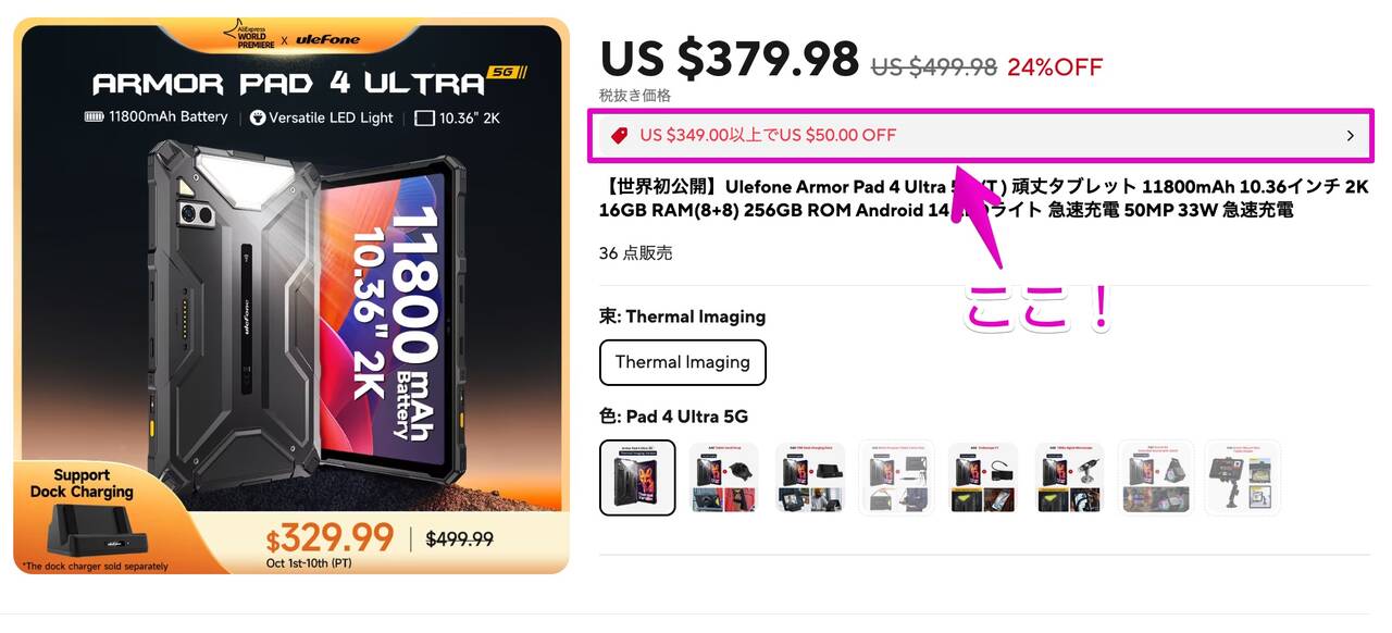 Ulefone Armor Pad 4 Ultra/Thermalの発売日は10月で記事執筆時点の価格は以下の通り。