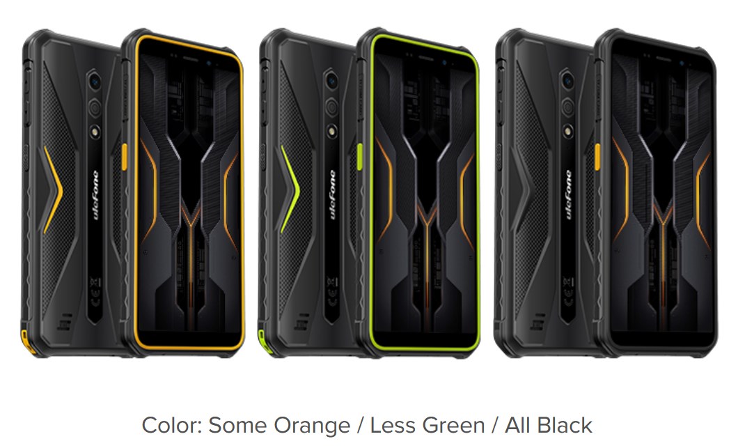 ▼Ulefone Armor X12 Proのカラーはオレンジ、ライムグリーン、ブラックの3色!アクセントカラーのみが変わるタイプです。MIL-STD-810HとIP69K等級も持っており、水や砂、衝撃に強いのが特色!↓