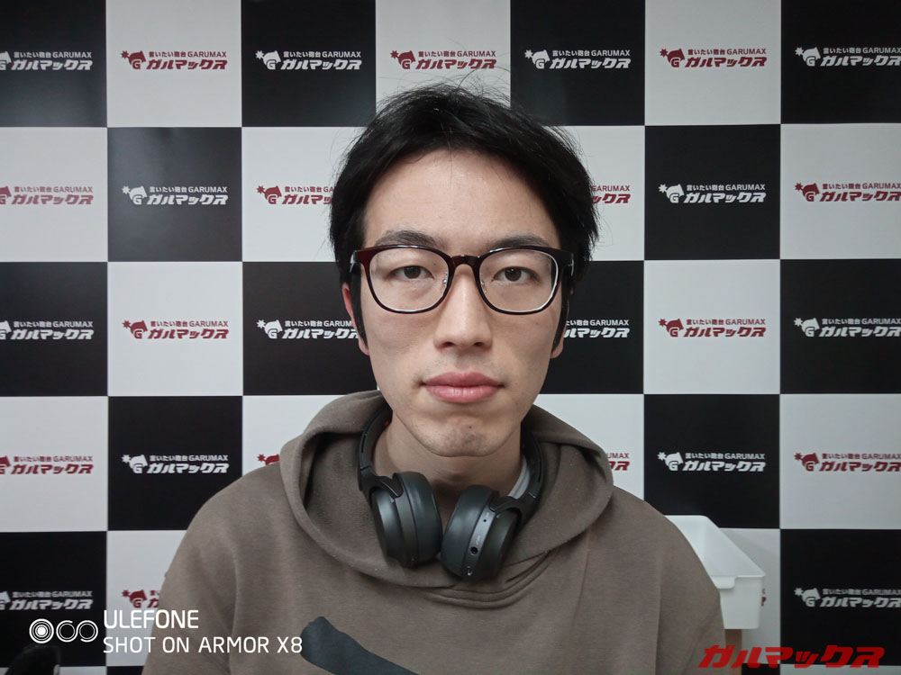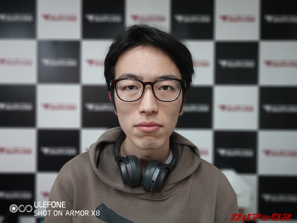 Ulefone Armor X8は800万画素のインカメラを搭載。単眼だがアウトカメラ同様にポートレート撮影も可能で背景との切り離し精度も同等の印象だった。インカメラは画角が固定されているが、2〜3人でも十分撮影できる。