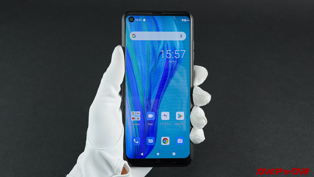 ▼ディスプレイはパンチホールを採用していますが、レンズ周囲の黒縁が太いので大きく感じます。公式の製品写真よりもめっちゃデカイ!うーん、これはイマイチ!↓