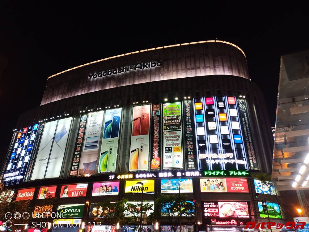 ▼光量の少ない場所では明るくしようとISOがガツンと上がり、光る看板は白飛び、暗い夜空はノイズだらけになってしまった。左がUlefone Note 11P、右がiPhone 12 Pro Max。↓
