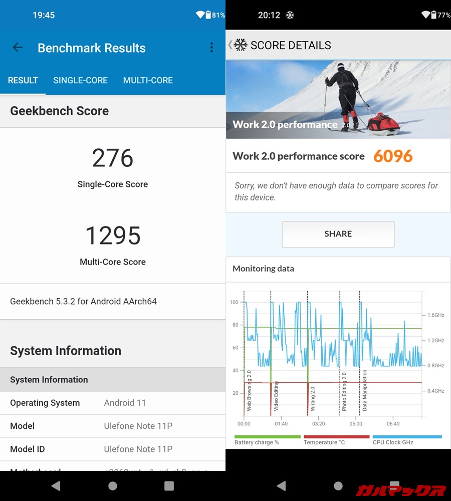 Ulefone Note 11Pの処理性能・実機ベンチマークスコア