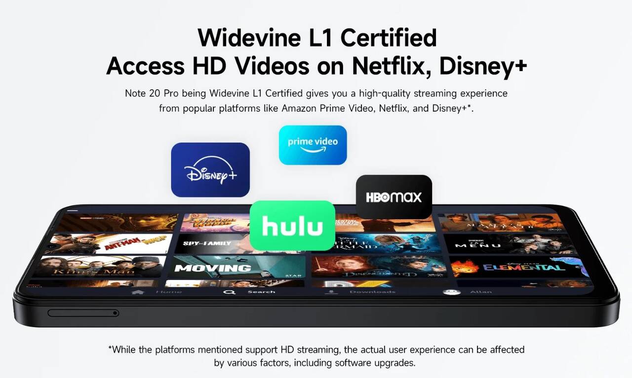 ▼ただしこのモデル、生意気(?)なことにWidevine L1対応で、プライムビデオとかディズニープラスとか著作権コンテンツを楽しめるのはGood。HD画質で楽しめますよ!↓