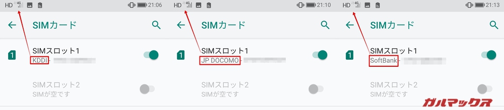 で、ドコモ、au、ソフトバンク、ワイモバイルの全キャリア(執筆時点では楽天キャリアはサービスインしていないので省く)での通信テストでは、見事、全てのキャリアで音声通話+データ通信が出来ることを確認しましたl