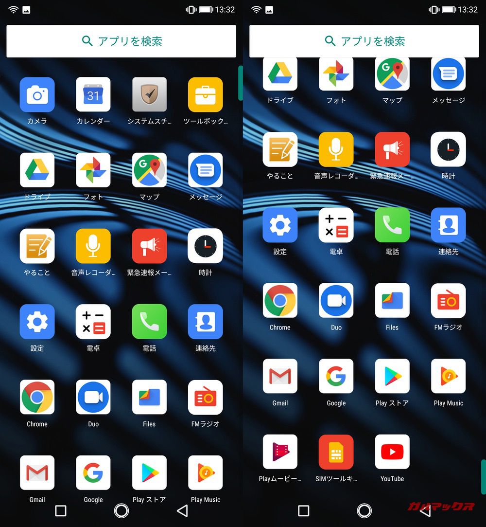 その他、「緊急速報メール」「やることアプリ(ToDo)」「FMラジオ(有線イヤホン必須だけどイヤホンジャック非搭載なんで使い勝手が悪い)」なども初期から入っております。海外スマートフォンの安いモデルとしては中々充実した内容。
